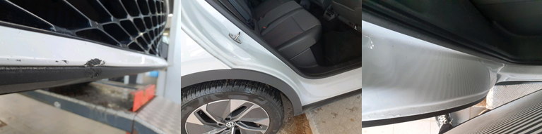 bule i h. bagerste dørfals (bulemanden), navkapsle mangler i sommerhjul, lette brugsspor på alufælge kan forekomme
